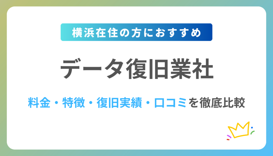 本記事では、横浜近辺で拠点を構える数あるデータ復旧業者の中から、利用者の評判が良く実績豊富なデータ復旧業社をランキング形式でご紹介します。比較検証は以下の5項目について行いました。