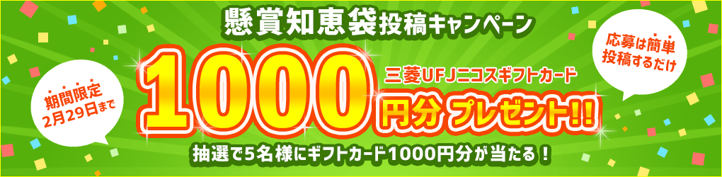 - 内容:対象期間中に「懸賞知恵袋」に2021年当たって嬉しかったもの、もしくは2022年当てたいもののどちらかを投稿した方の中から抽選で3名様に現金1000円をプレゼント