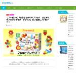 おもちゃの総合情報サイト「おもちゃ情報net.」では、 1歳半から遊べる「おおきなダイヤブロック はじめてのブロックあそび ボックス」を2名様にプレゼントします。組み立てやすくはずしやすいので、はじめてのブロック遊びにぴったり!