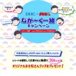 DHC×おそ松さん なが~く一緒キャンペーン!対象商品を1,000円(税別)以上購入いただき、レシートを撮影して応募すると抽選で306名様にオリジナルおそ松さんグッズが当たるキャンペーン!DHC×おそ松さん オリジナル記念ボード(サイン入り)やオリジナルミニポーチ&アクリルキーホルダーなど、豪華景品が盛りだくさん!